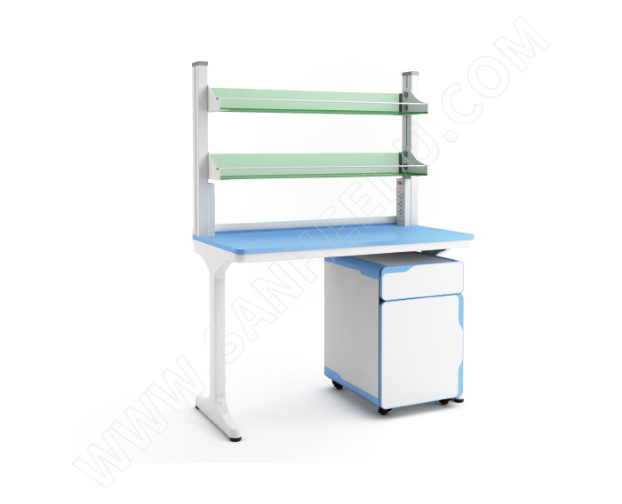 可選臺(tái)面②實(shí)心理化板臺(tái)面耐酸堿,熱彎加工成型,使臺(tái)面前端呈半圓弧形,圓潤下滑。 框架采用4MM厚的優(yōu)質(zhì)鋁型材,表面經(jīng)過靜電噴涂處理,具有較強(qiáng)的耐蝕性。 可根據(jù)需要選配書包斗、活動(dòng)柜、試劑架、桌面吸風(fēng)罩、抽屜電源等可選組件。 |