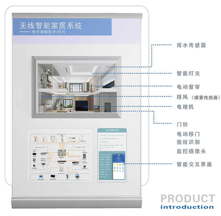 內(nèi)嵌智能家居演示模型和智能交互手機(jī),通過APP可以無線控制模型的各種交互動作。 采用智慧型邏輯主板,能精準(zhǔn)智能地控制各種傳感器和聲光電設(shè)備,配有指紋識別模組、暖通數(shù)字顯示模組、環(huán)境感知模組、可視門鈴及監(jiān)控、自帶離線語音控制等。 |